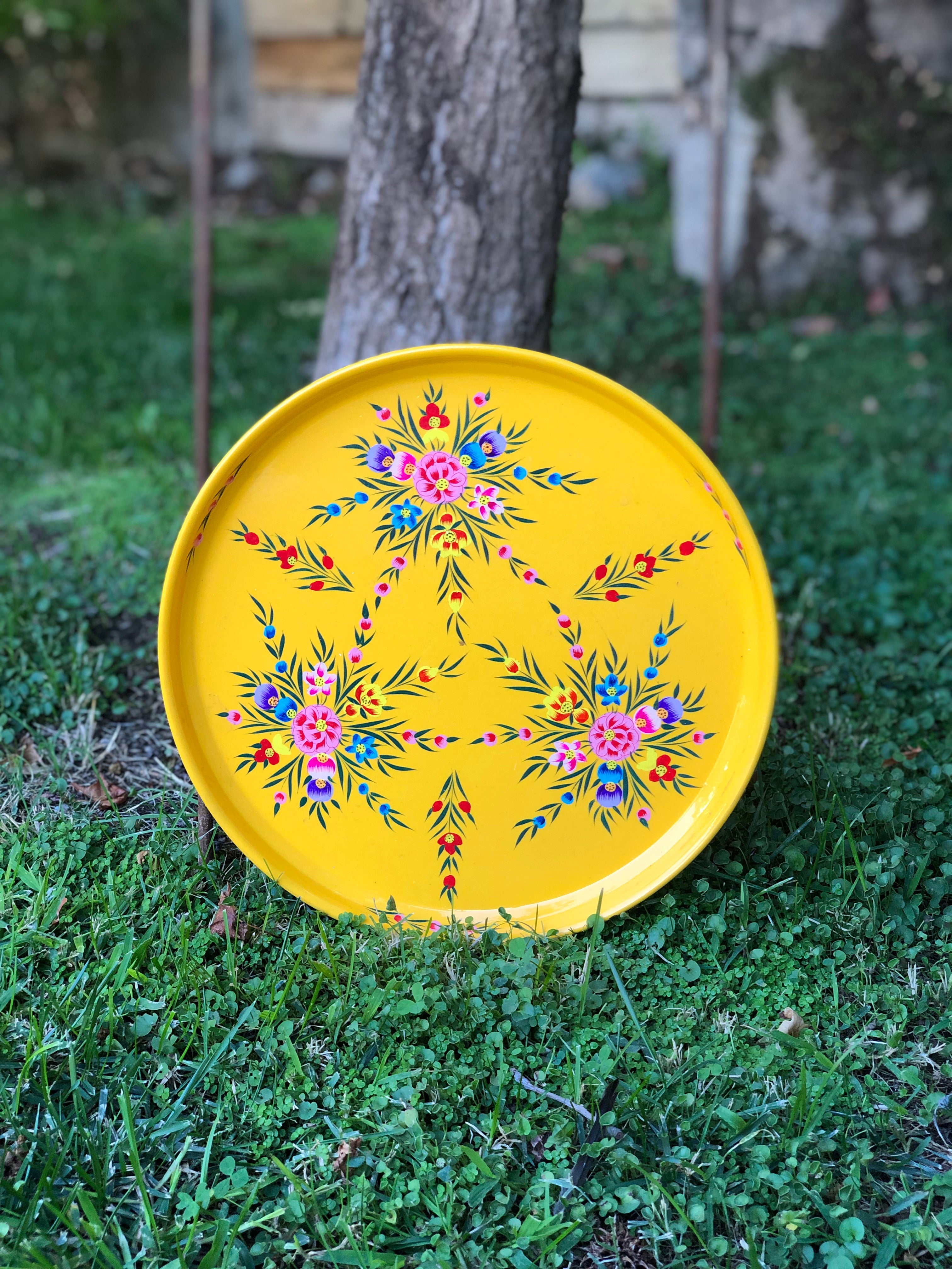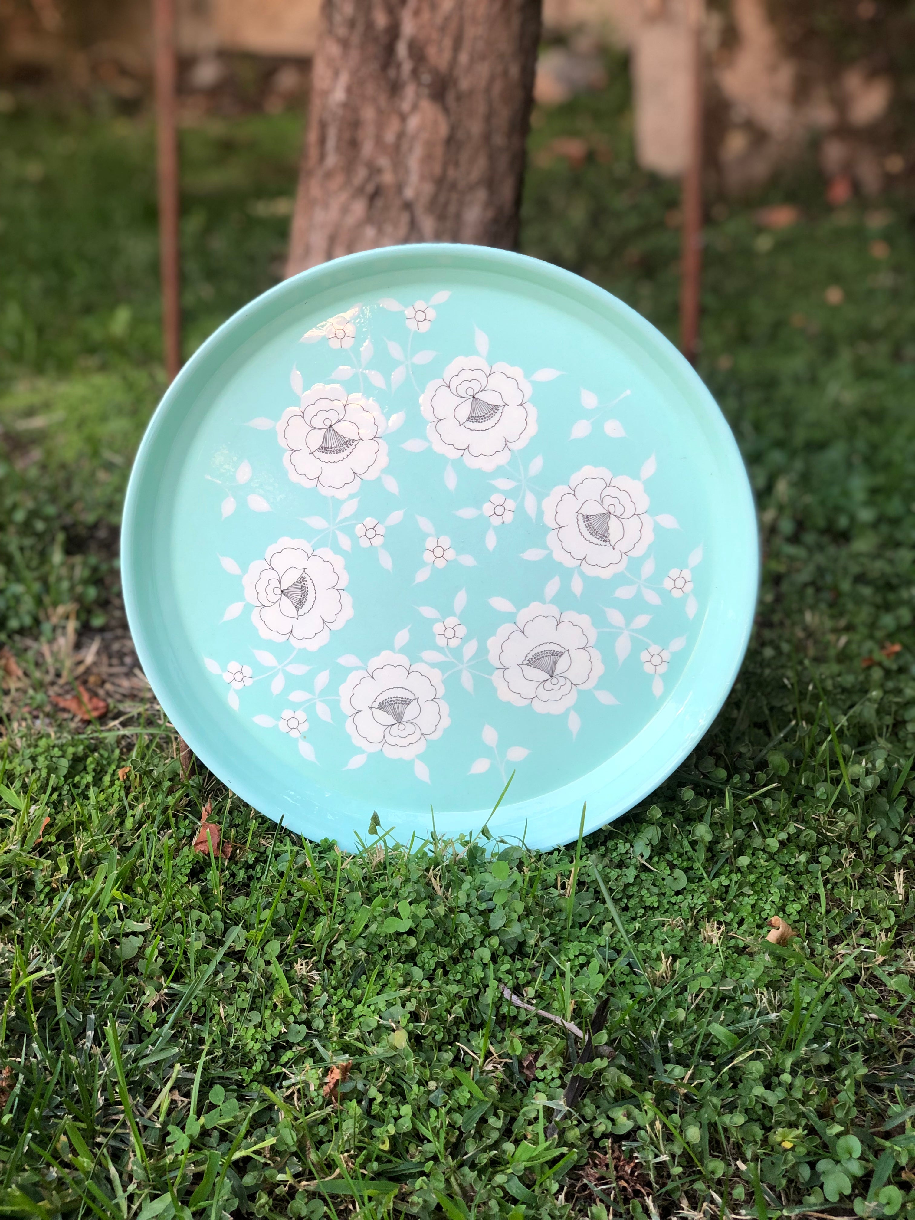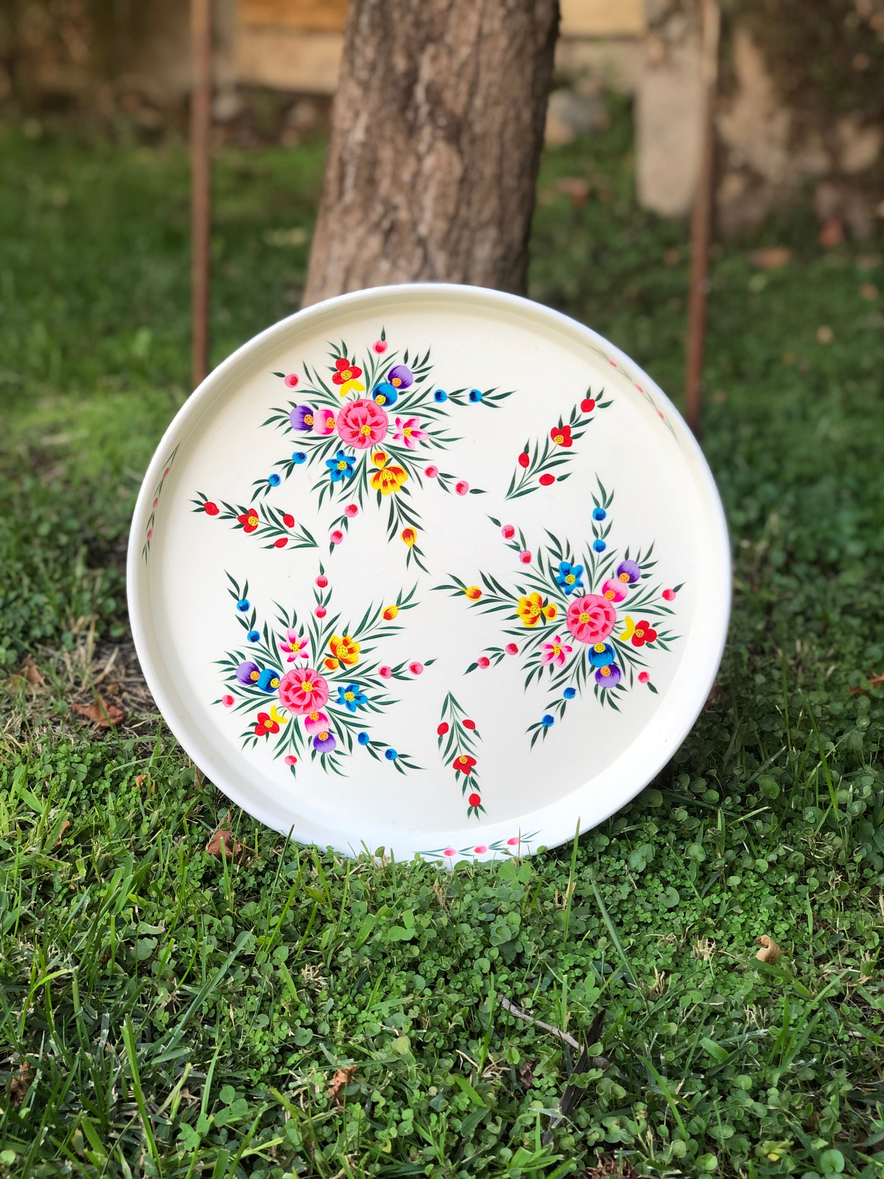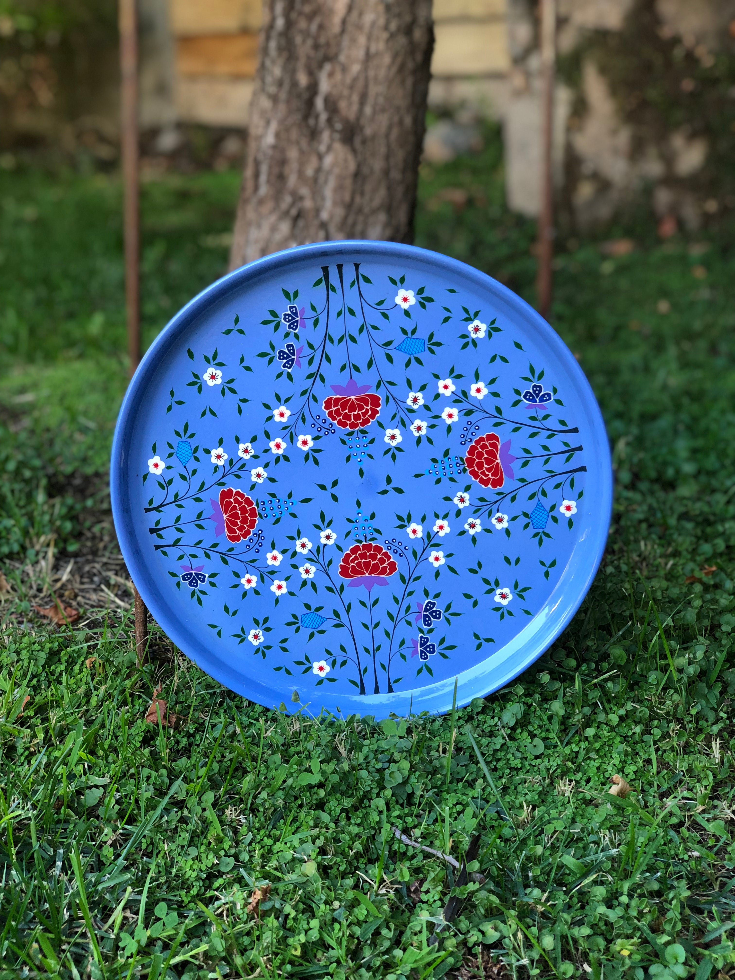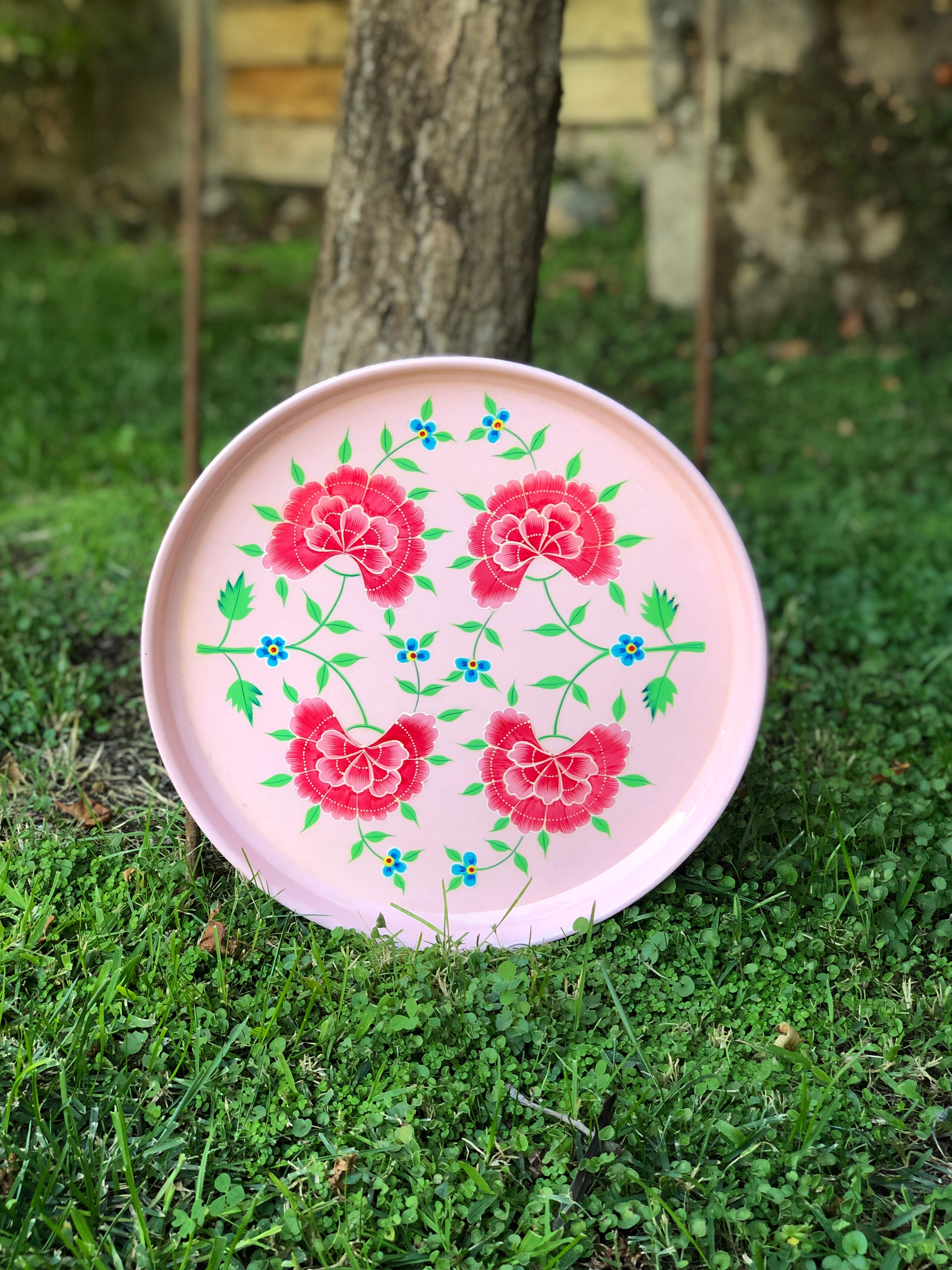 Bandejas redondas de acero inoxidable pintadas y esmaltadas en la India.