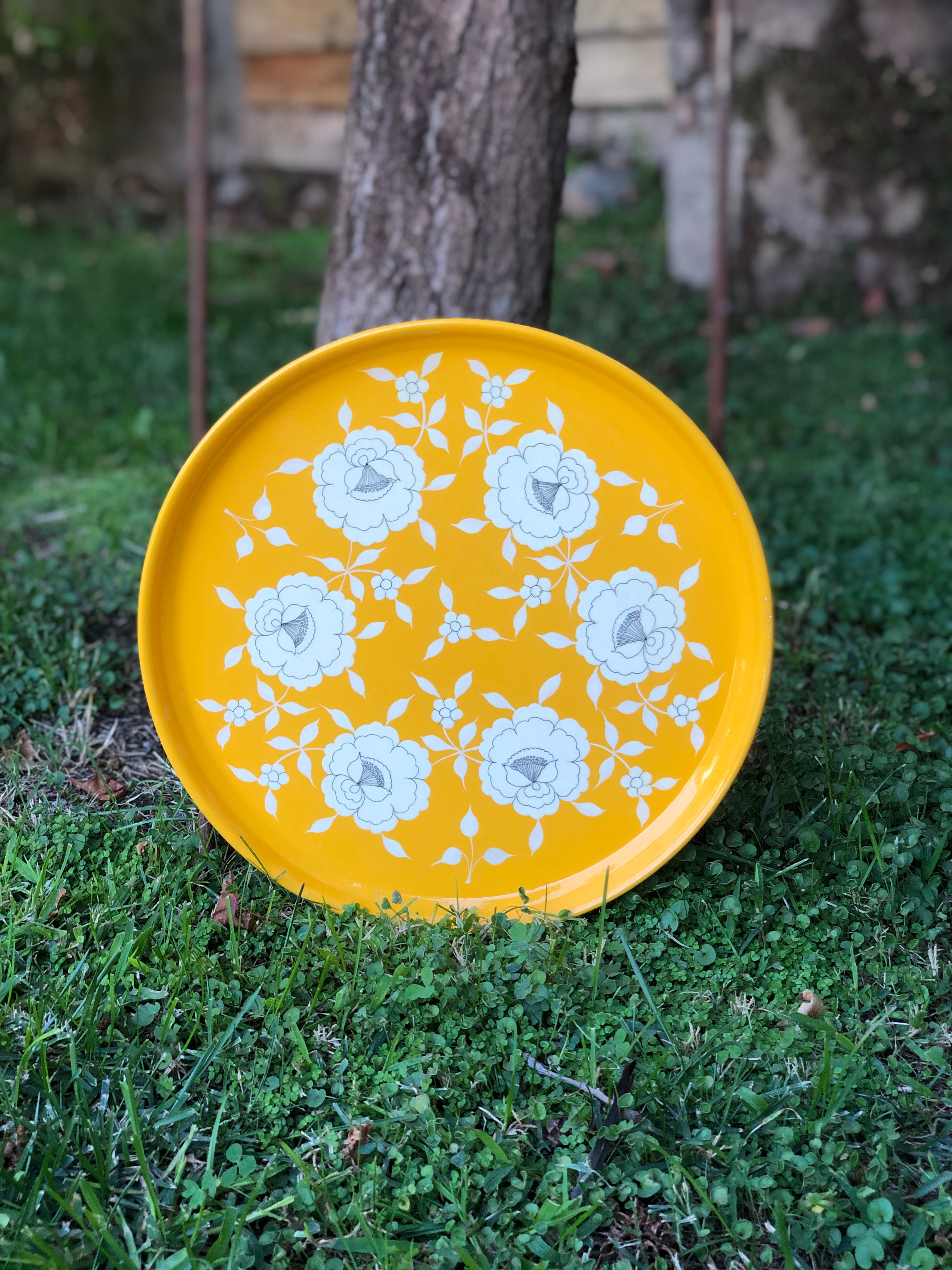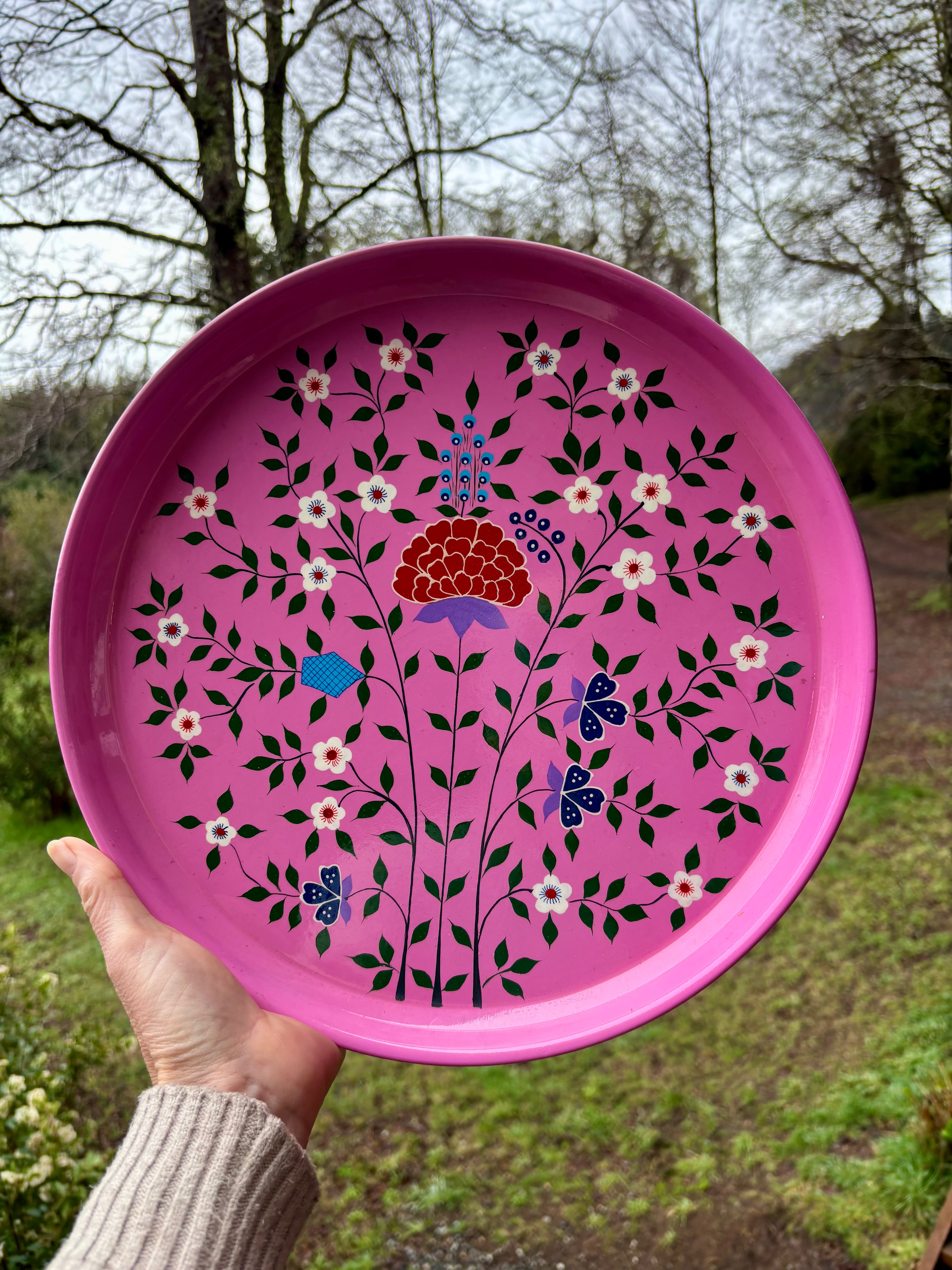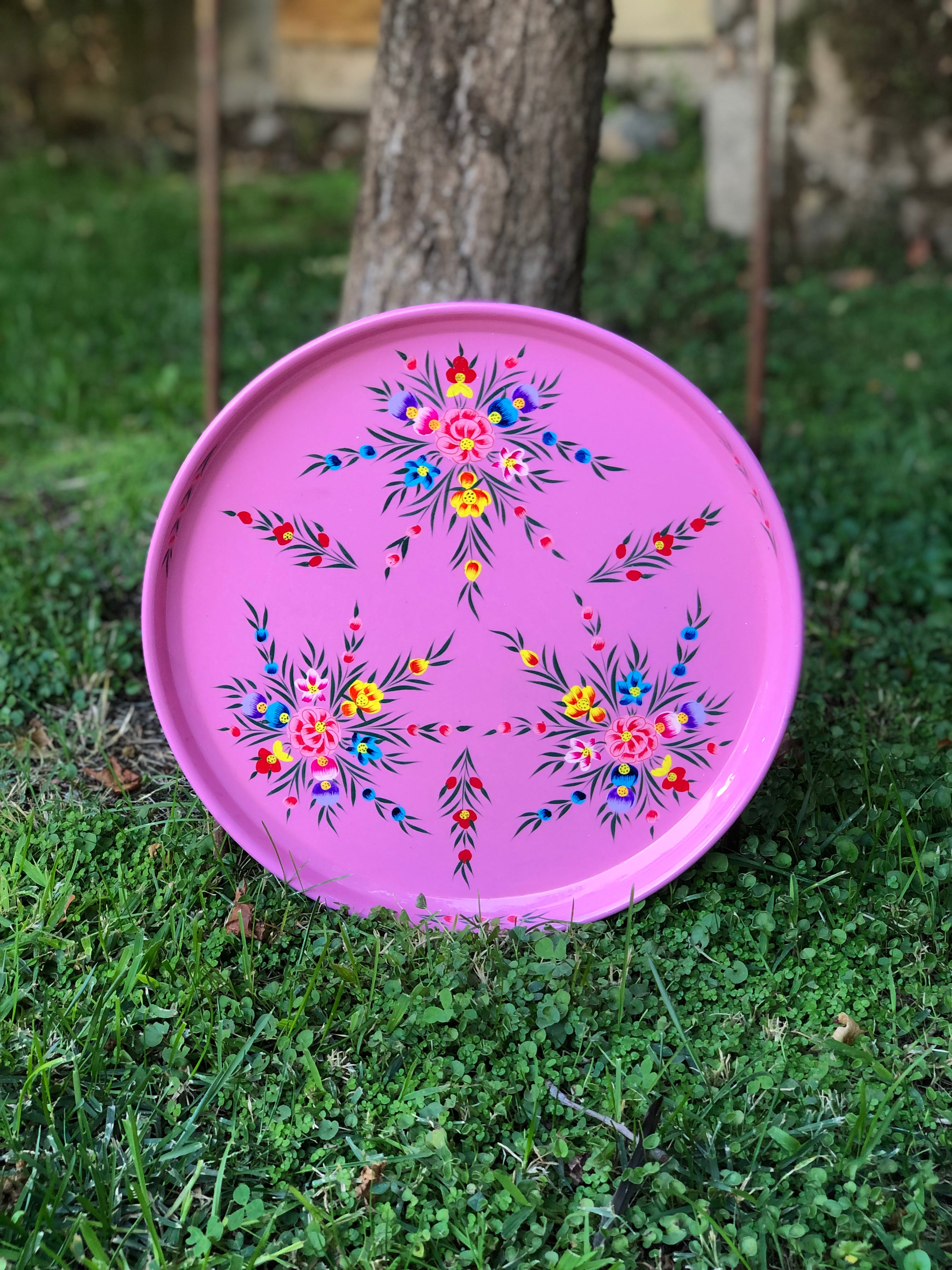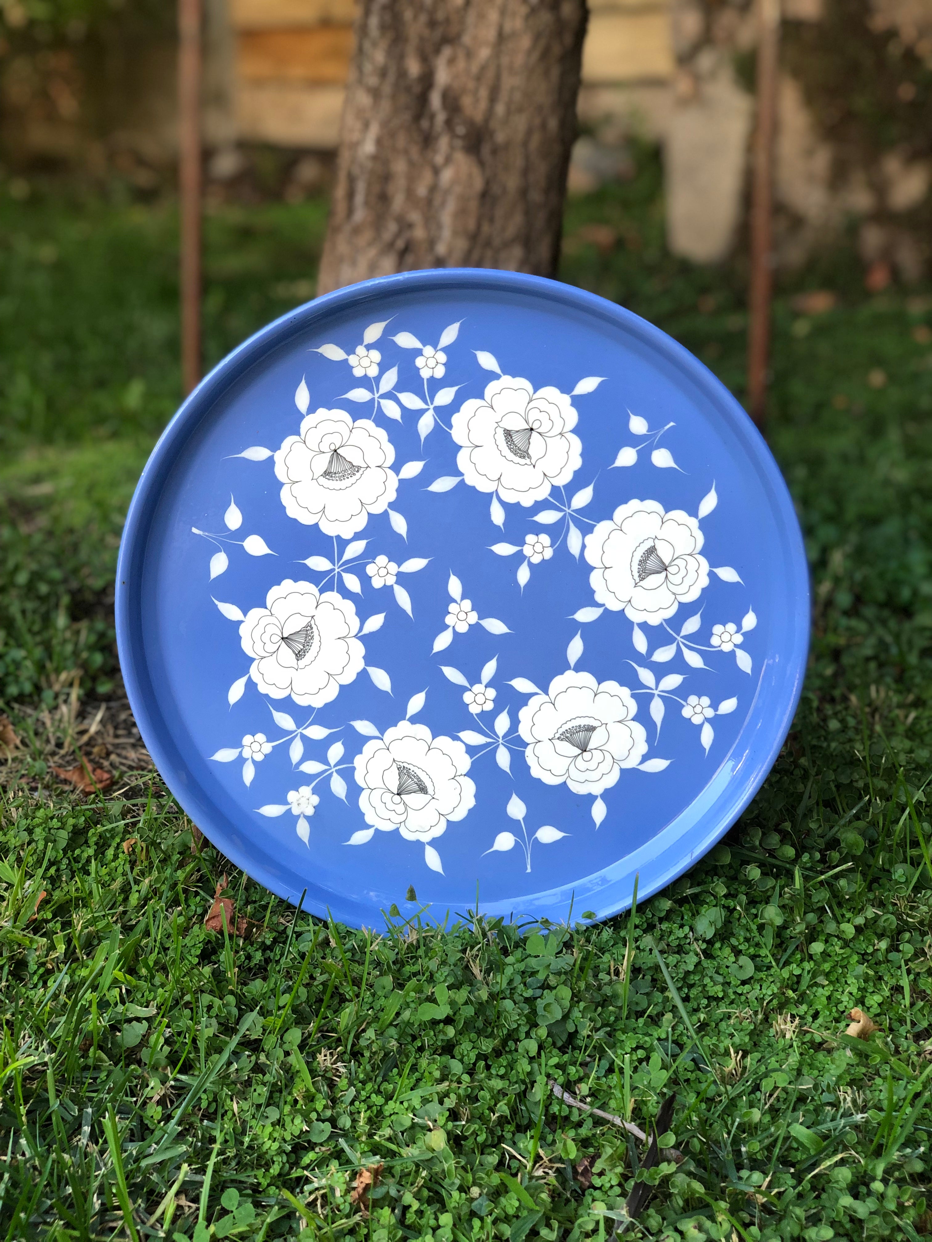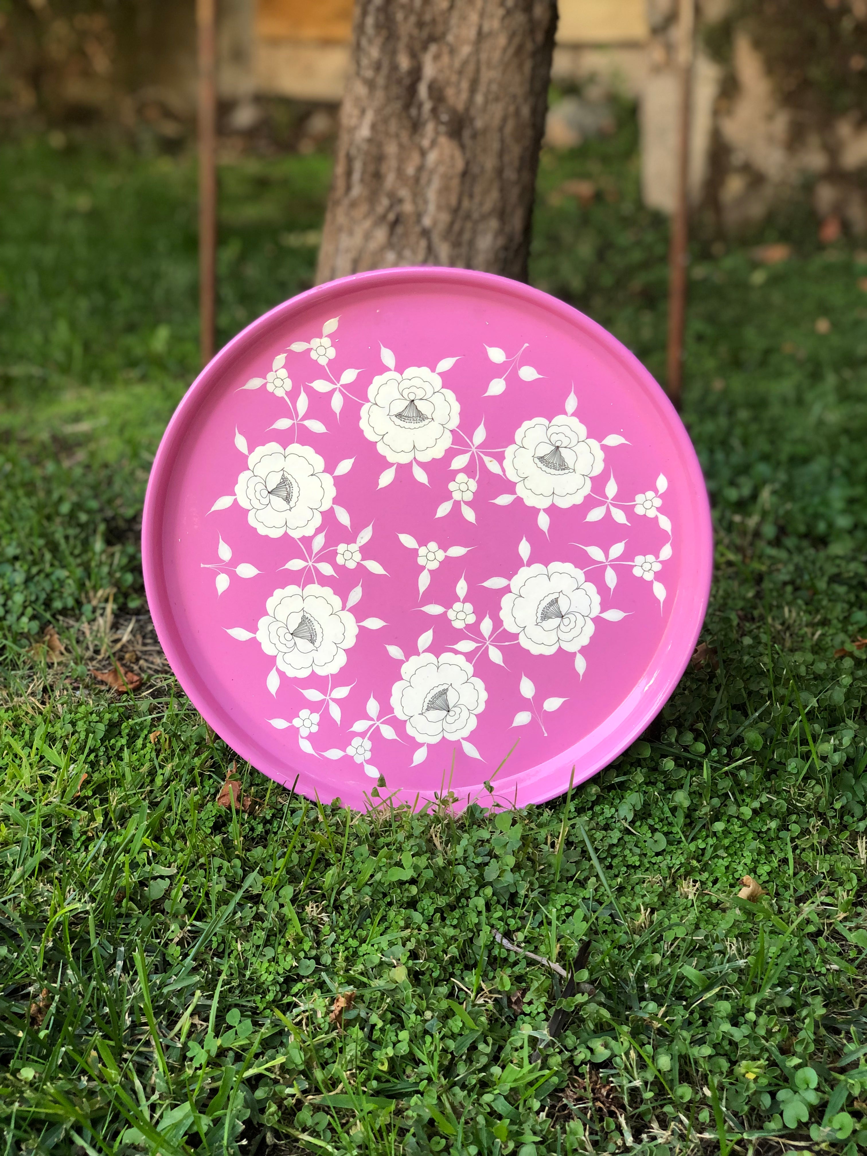 Bandejas redondas de acero inoxidable pintadas y esmaltadas en la India.