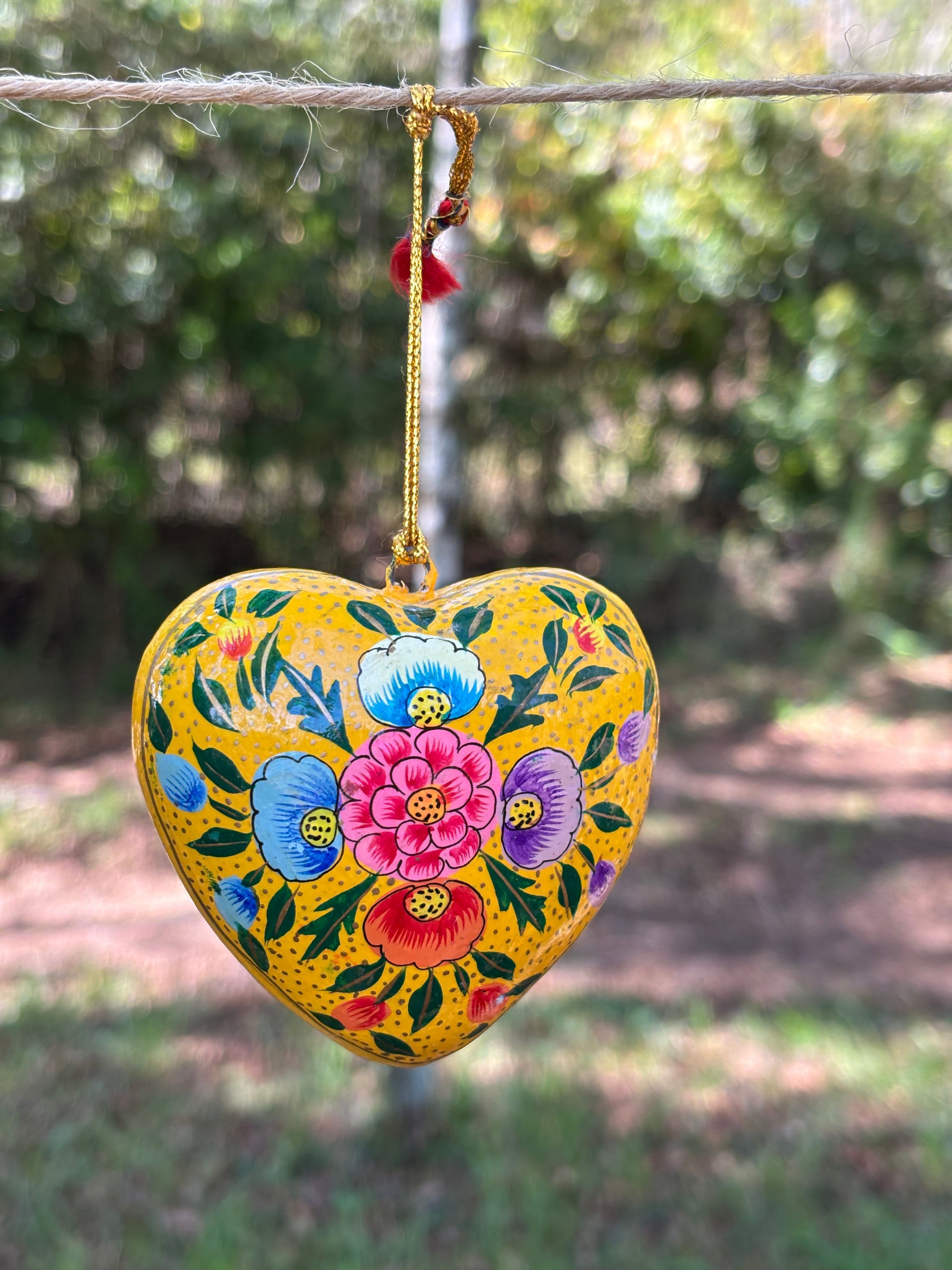 Corazones hechos 100% a mano en papel mache por artesanos en la India.